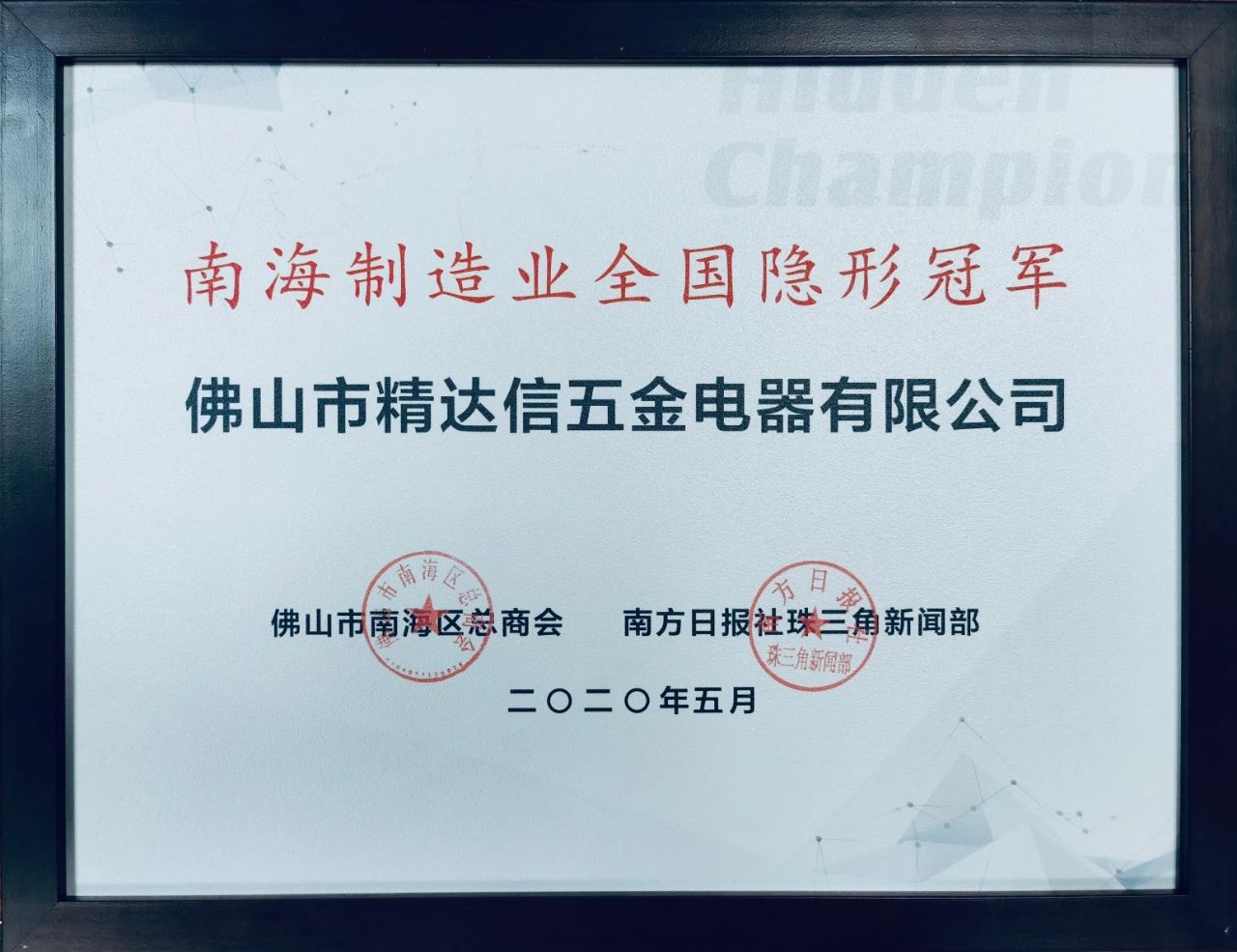 精达信获"南海制造业全国隐形冠军"授牌